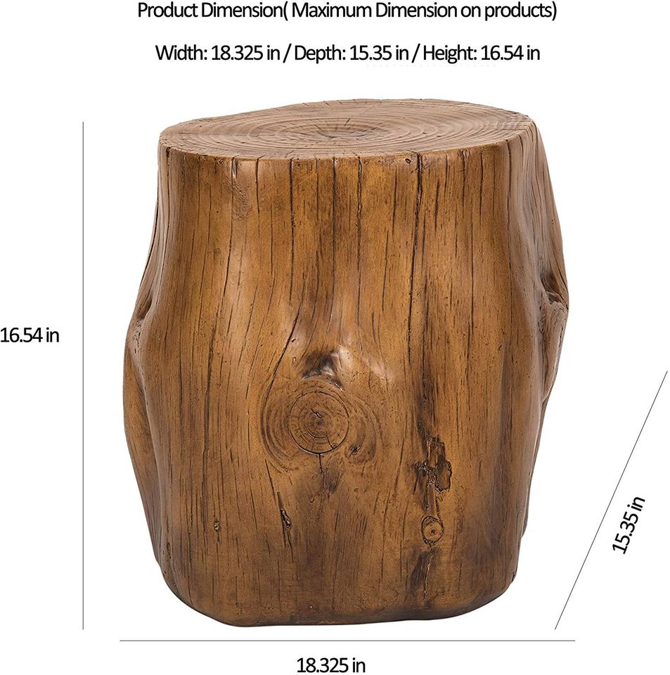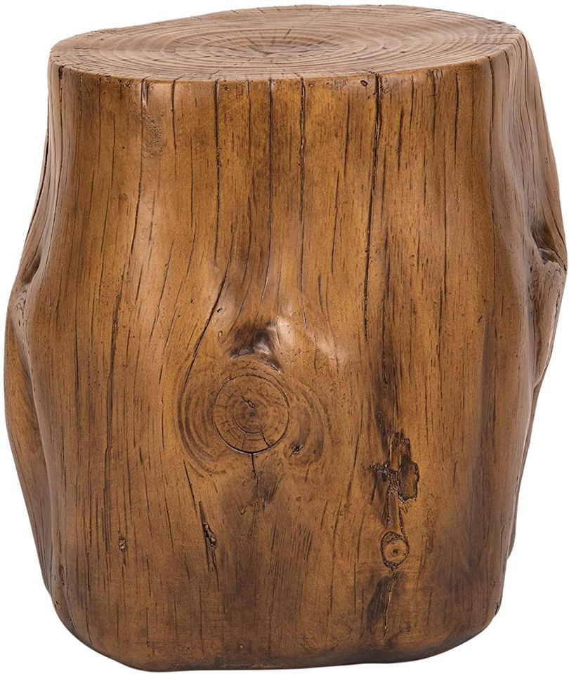 This round accent table features a brown finish and looks just like a wooden stump, with realistic texture and grain detailing.
